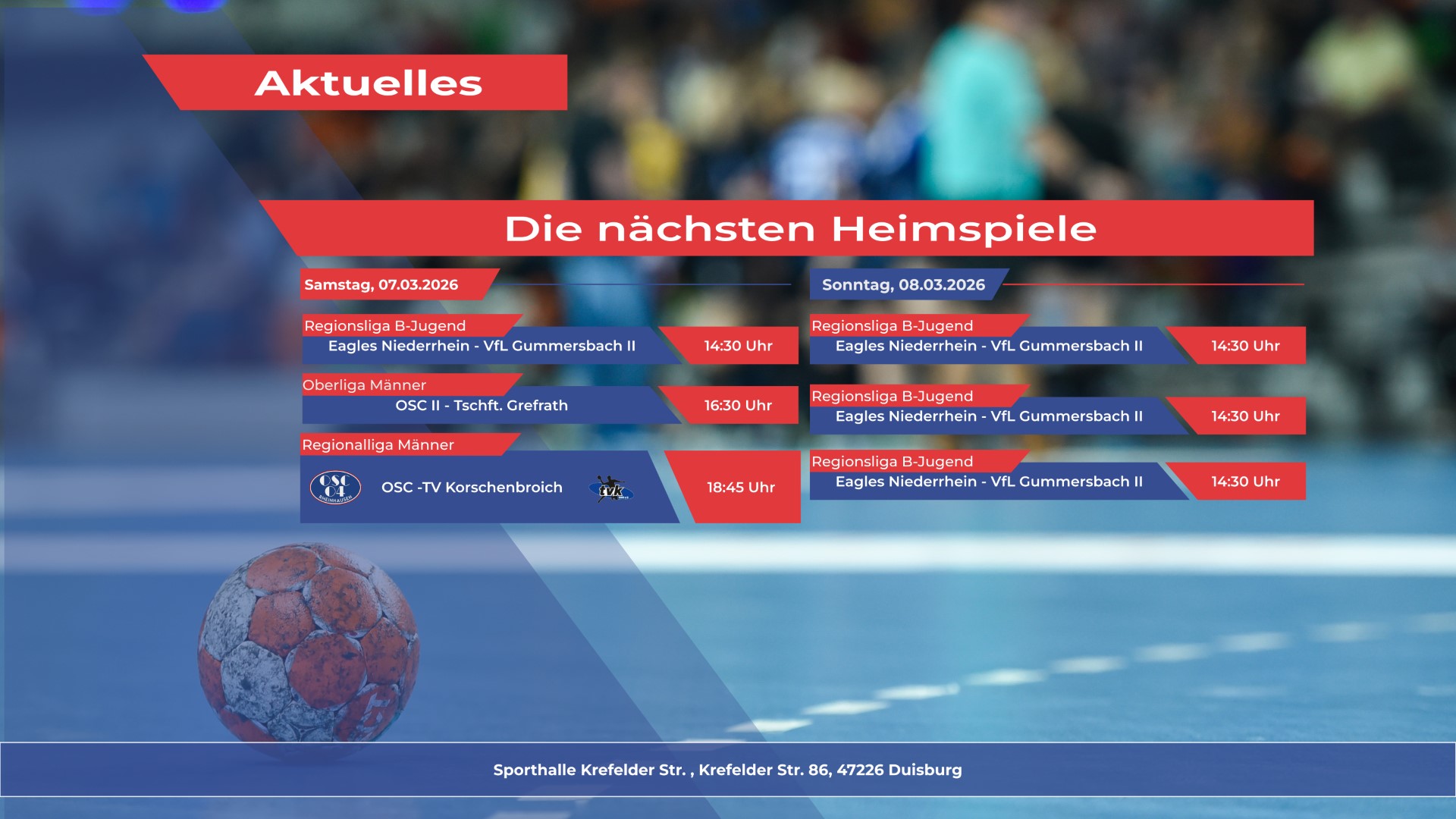 Am kommenden Wochenende steht die Sporthalle Krefelder Straße erneut ganz im Zeichen des Handballs. Von der Jugend bis zu den Senioren sind zahlreiche OSC-Teams im Einsatz – mit mehreren richtungsweisenden Partien vor heimischer Kulisse.