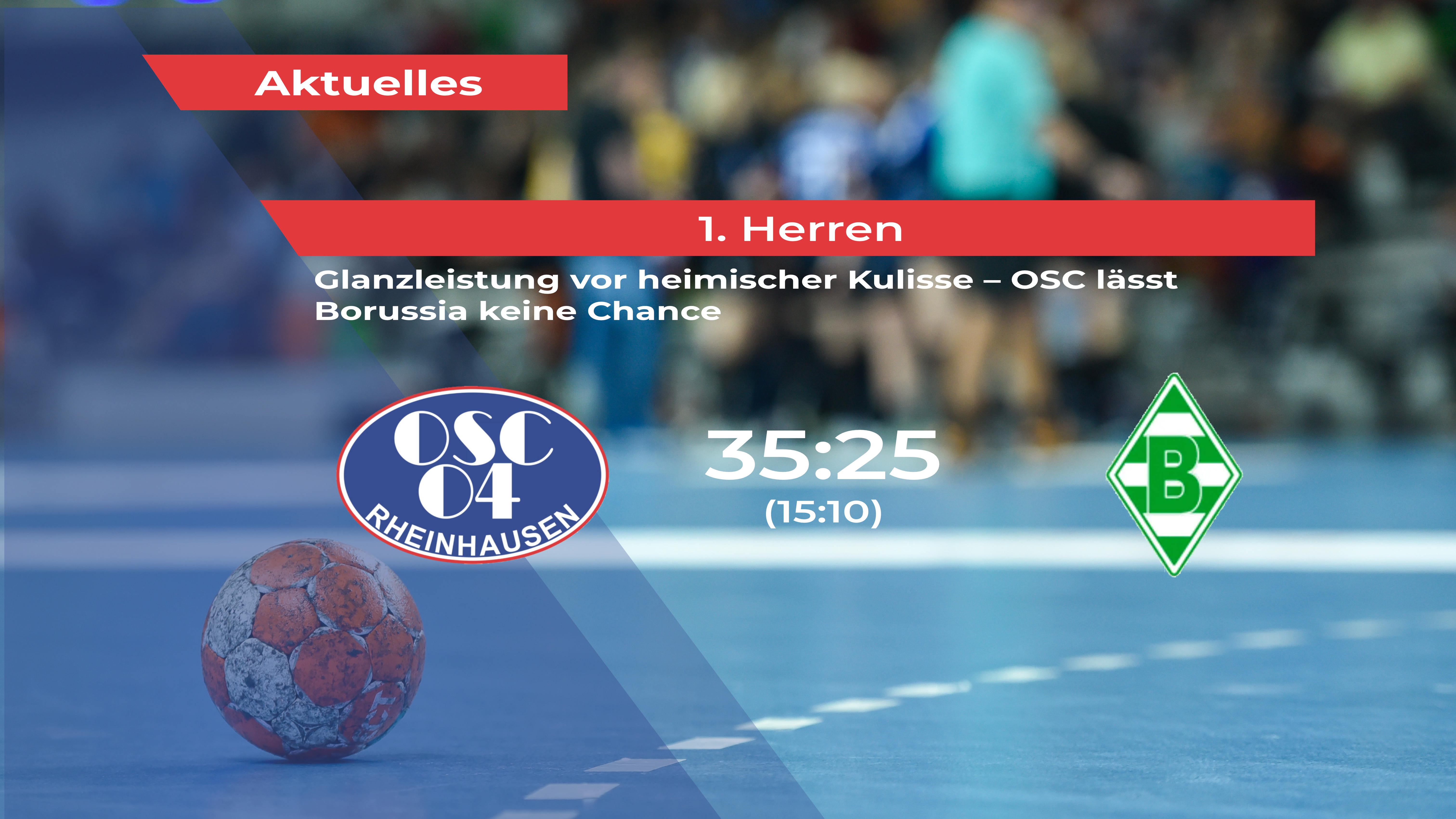 Der OSC Rheinhausen hat am Samstagabend eine starke Reaktion auf die Derby-Niederlage in Essen gezeigt und Borussia Mönchengladbach vor heimischem Publikum deutlich mit 35:25 (15:10) bezwungen. Von Beginn an präsentierte sich der OSC hochkonzentriert, spielfreudig und defensiv stabil – eine Leistung, die dem Spiel früh ihren Stempel aufdrückte.