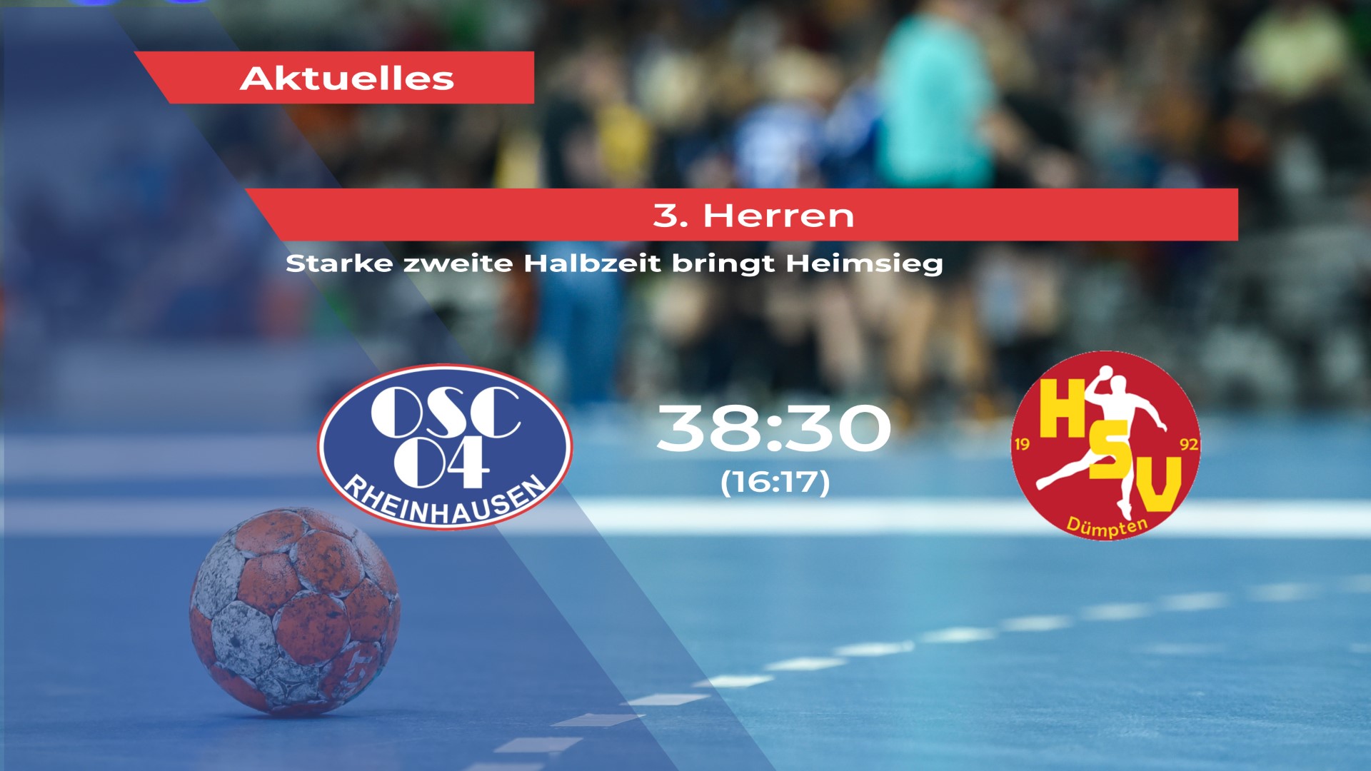 Der OSC Rheinhausen III hat sich im Rückspiel gegen den Tabellendritten HSV Dümpten III eindrucksvoll revanchiert und sich nach der knappen Hinspielniederlage diesmal deutlich mit 38:30 (16:17) durchgesetzt.