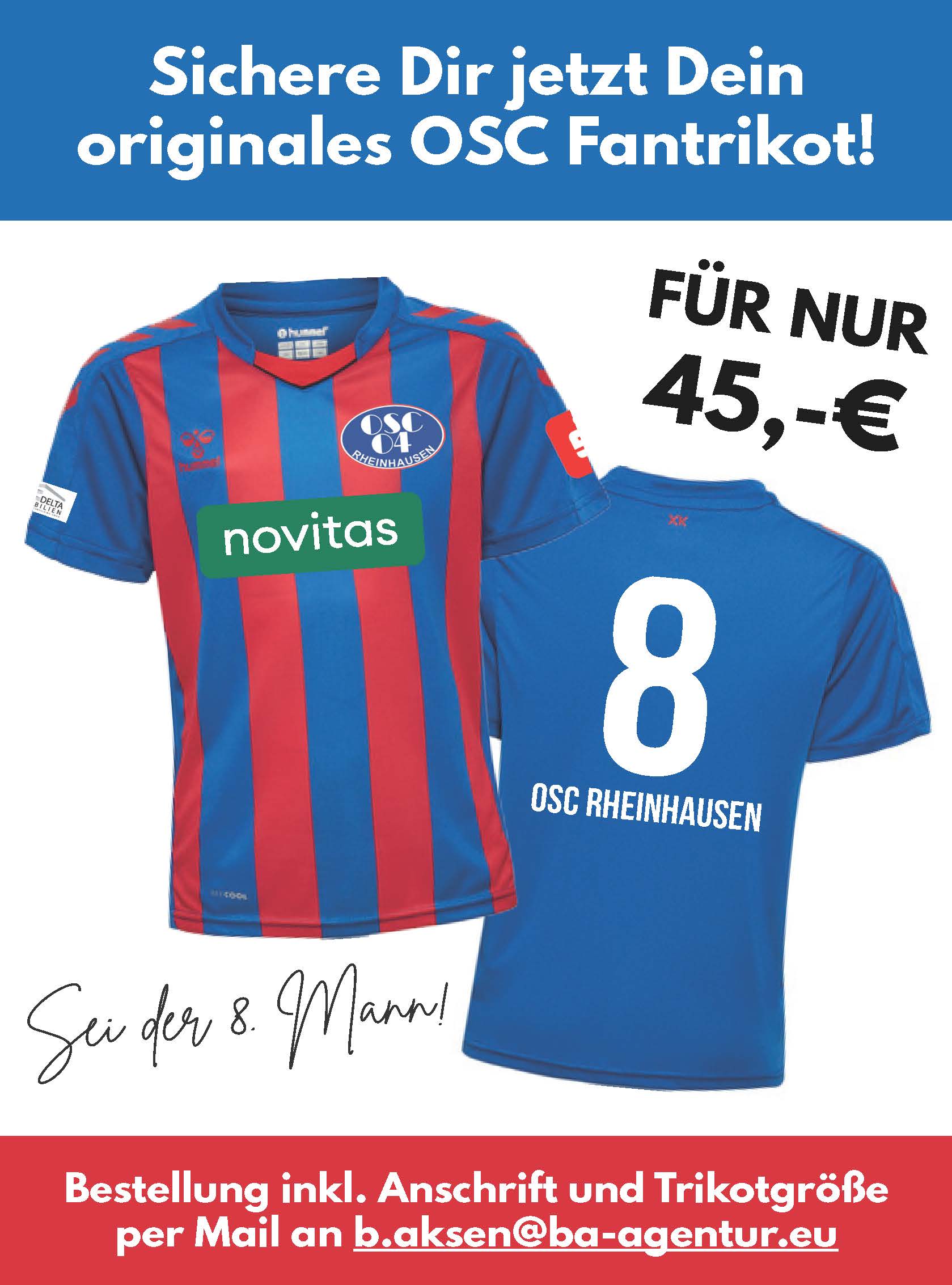 Pünktlich zu Weihnachten bietet der OSC Rheinhausen allen Fans die Möglichkeit, sich das originale OSC Fantrikot zu sichern. Ob als Geschenk oder für den eigenen Kleiderschrank – zeige, für welchen Verein dein Herz schlägt und werde zum 8. Mann auf der Tribüne!